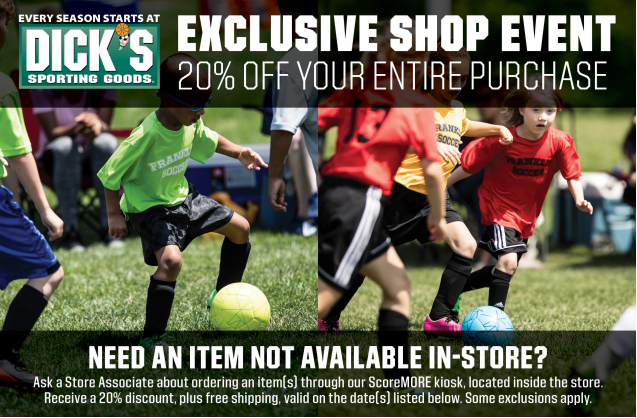 GSSA players and families can join us for discounts at Dick's Sporting Goods valid 8/15/2025 through 8/17/2025.